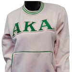 Sweatshirt showcasing embroidered chenille Greek letters, crew neckline for a non-restrictive fit, ribbed collar and cuffs, improve durability