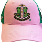Two-color baseball cap with every detail embroidered, including the shield on the front, the founding year, and the Greek letters on the sides.