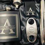 Flask w/funnel, Cigar Holder, Cigar Cutter, Lighter