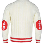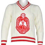 Tackle-twill V-neck sweater with embroidered elbow pads.