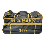 Two-wheeled trolley bag with detachable cross-body strap as well as a pull out handle.
