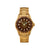 Fraternity, round-faced watch; water-resistant case. Three hand analog display with quartz movement. Bracelet features a fold-over clasp closure with push-button release.