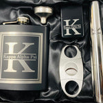 Flask w/funnel, Cigar Holder, Cigar Cutter, Lighter