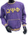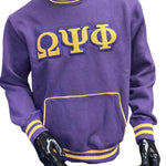 Sweatshirt showcasing embroidered chenille Greek letters, crew neckline for a non-restrictive fit, ribbed collar and cuffs, improve durability