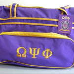 Two-wheeled trolley bag with detachable cross-body strap as well as a pull out handle.