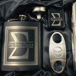 Flask w/funnel, Cigar Holder, Cigar Cutter, Lighter