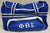 Two-wheeled trolley bag with detachable cross-body strap as well as a pull out handle.