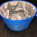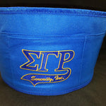 Note: Size: 15" top opening x 12.75" diameter x 8" height. Outside pocket is 7" x 5.5"