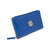 Soft leather wallet, enhanced with deep embossing and signature letter medallion along with matching signature zipper pull. Inside features include: 1 Slide Pocket, 2 Bill Compartments, 1 zippered Coin Compartment, and 4 Credit Card Slots. Wallet measures 6 3/4" by 3 3/4" by 1"